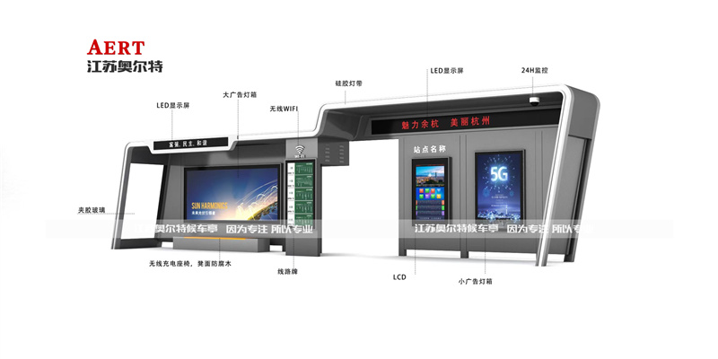 下面介紹下由江蘇奧爾特廣告設(shè)備有限公司長期合作制作的浙江余杭款智能候車亭: