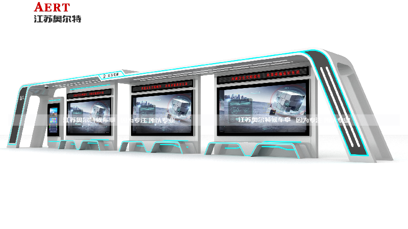 江西九江修水智慧公交站臺,配備55寸LCD液晶屏幕,可實時顯示公交車輛的運行狀態(tài)、到離站時間及站點、線路、換乘信息等。
